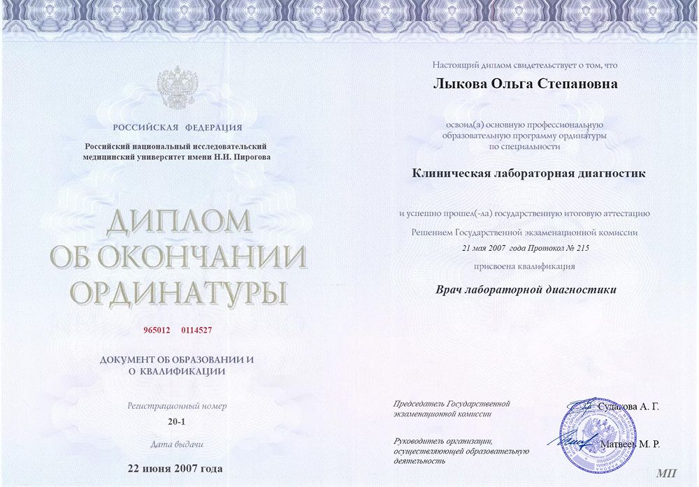 Российский национальный исследовательский медицинский университет имени Н.И. Пирогова (Клиническая лабораторная диагностика)