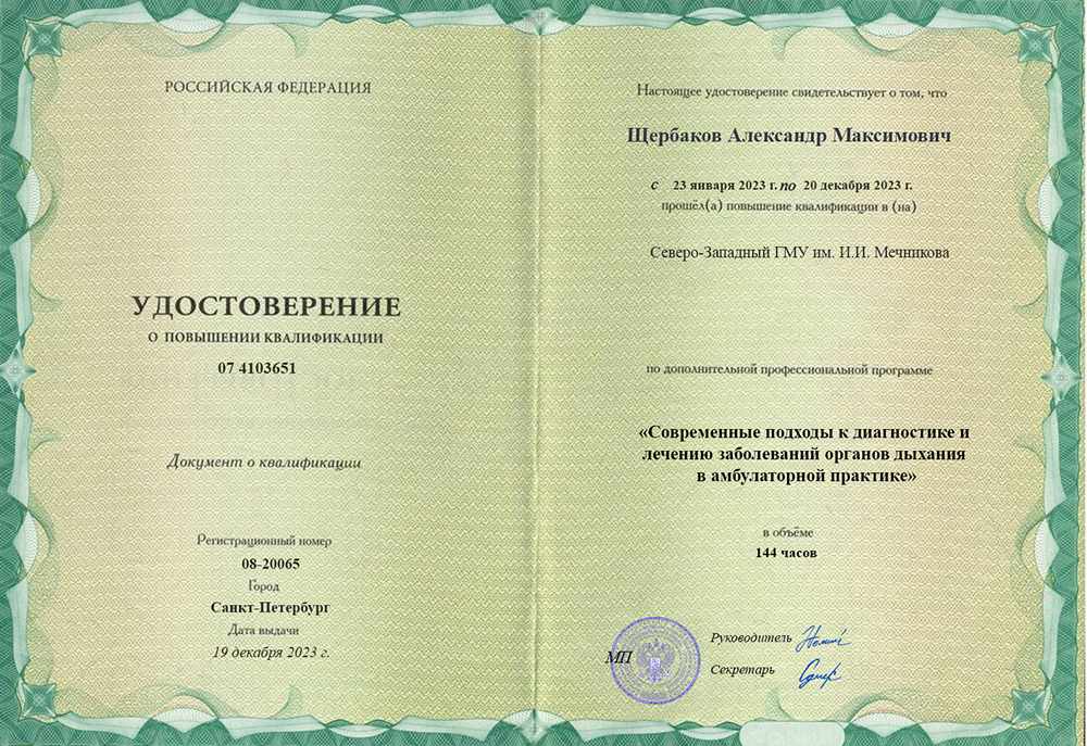 - 2023 : «Современные подходы к диагностике и лечению заболеваний органов дыхания в амбулаторной практике»